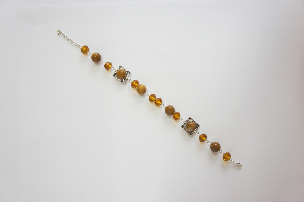 Натуральный камень: яшма 10 мм. Стеклянные бусины.