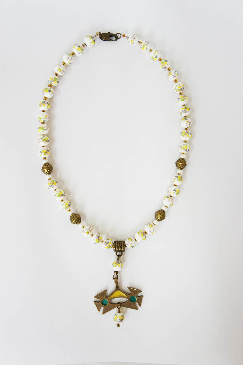 Керамические бусины 6 мм. Подвеска " Лунница" латунь.