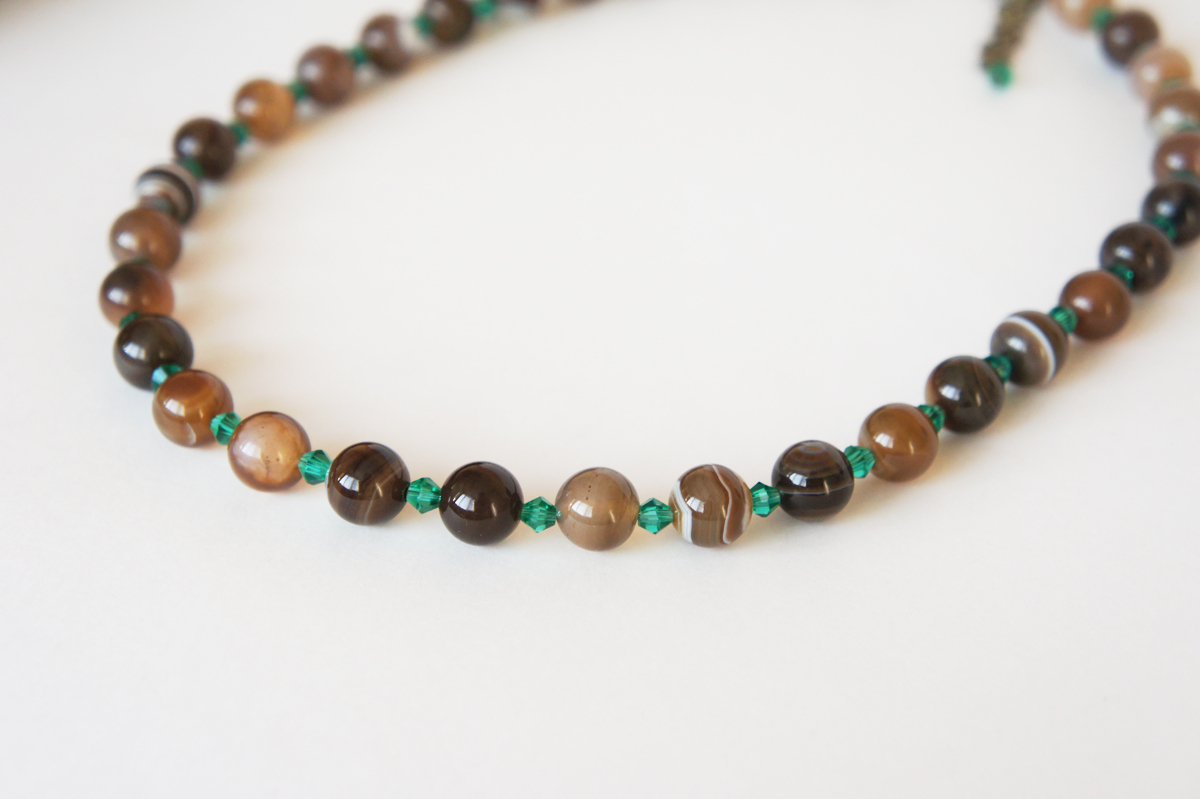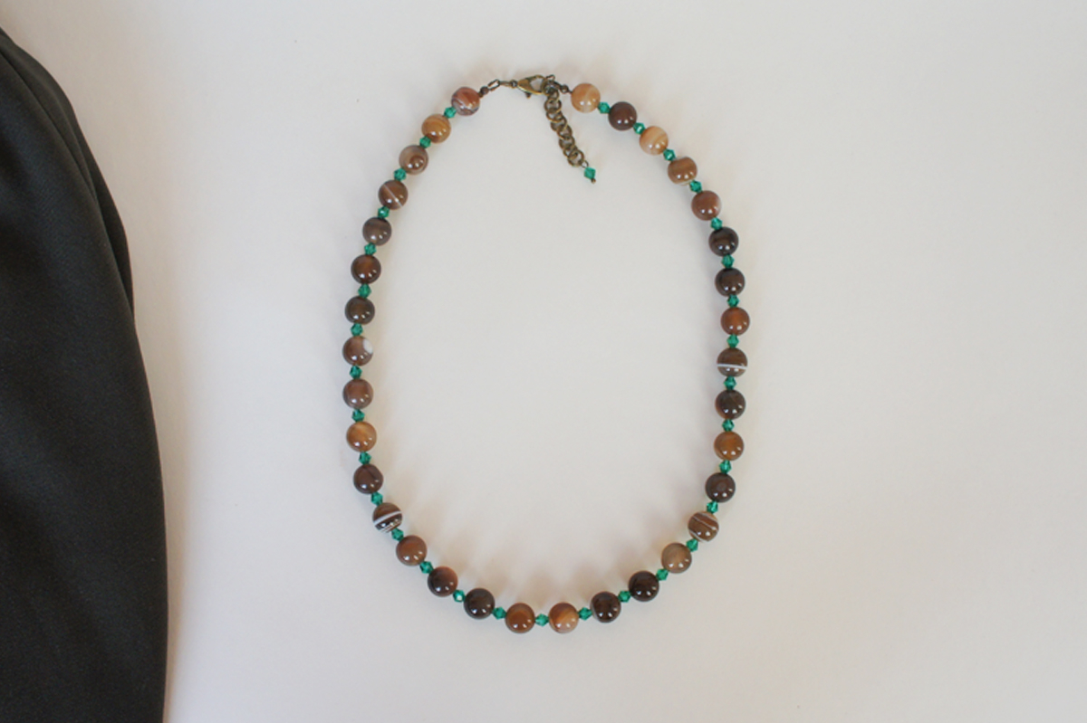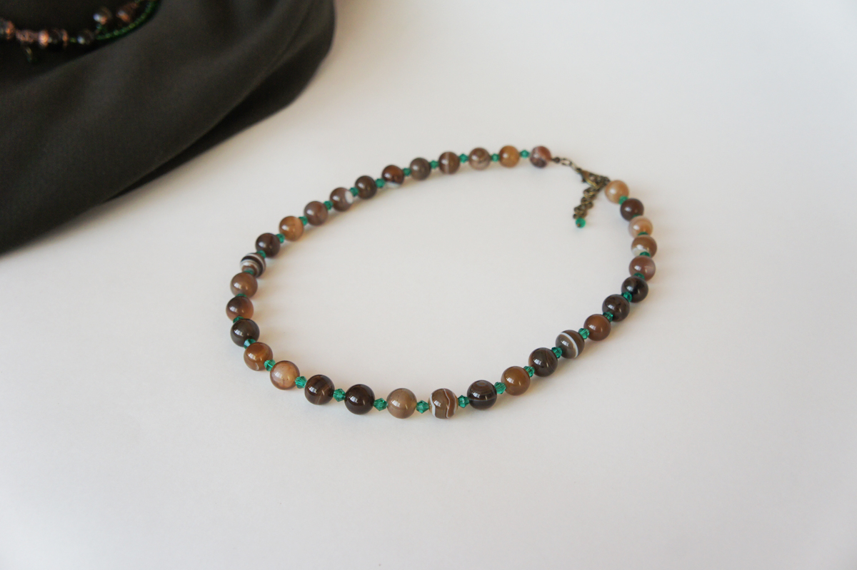 Сочетание зеленого и коричневого в этих бусах - естественное и гармоничное. Такой колорит подойдет для делового костюма.