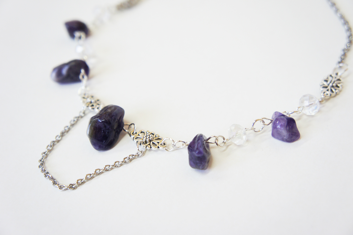 Натуральный камень: аметист. Стеклянные граненые бусины.