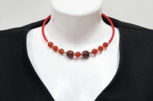Колье представляет собой изысканное и стильное украшение, изготовленное из натурального камня сердолик. Этот минерал обладает особым шармом и уникальной красотой, что делает его популярным.