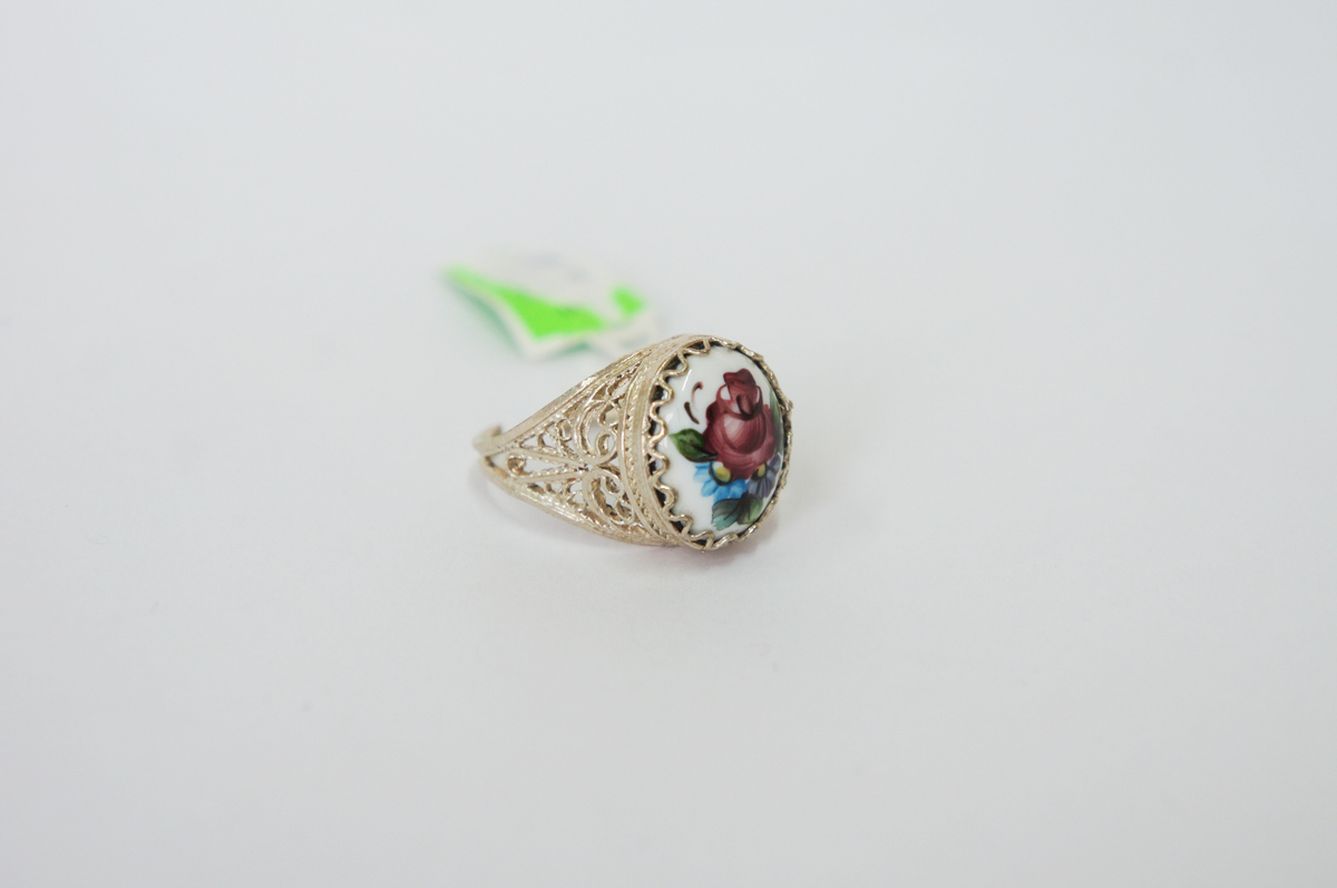 Кольцо р-р 17,5, оправа скань, вставка финифть, посеребрение.