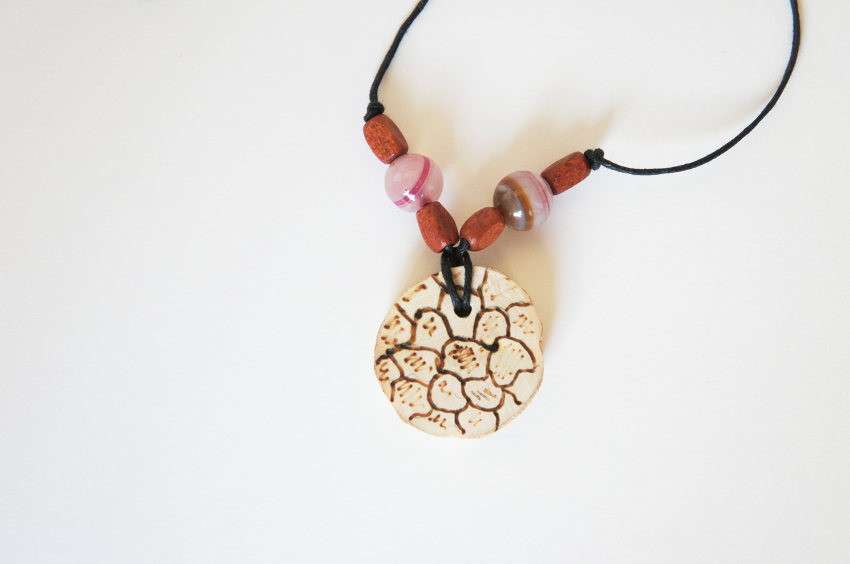 Подвеска дерево берёза. Диаметр 28 мм. Необработано. Рисунок пирография.
