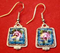 Серьги, оправа скань, вставка финифть, посеребрение.